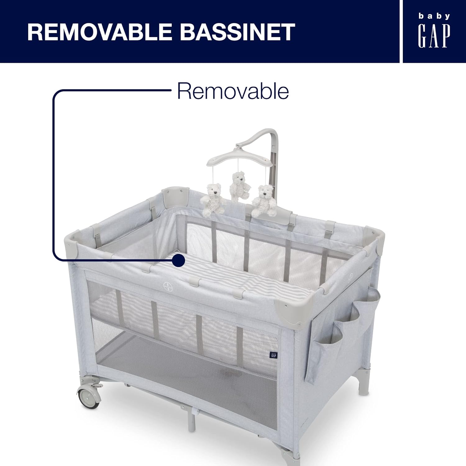 • Includes removable bassinet