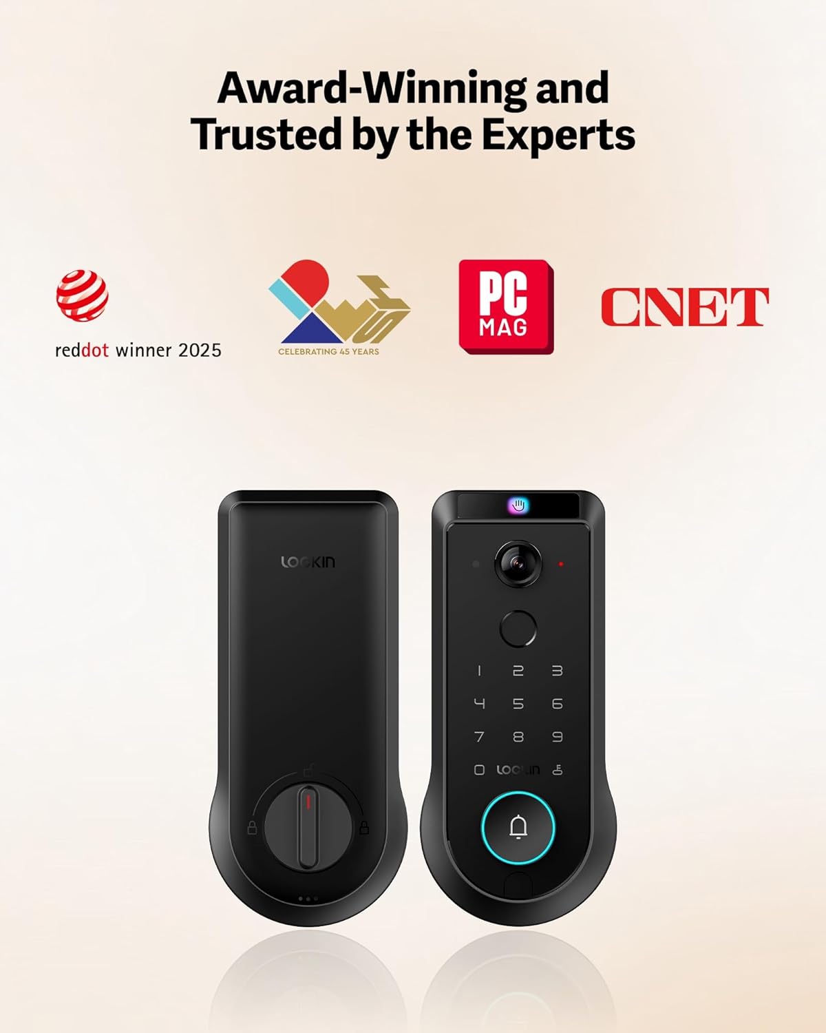 The Lockin smart video door lock delivers advanced home security with touchless fingerprint recognition and a built-in 2K ultra-wide camera for clear, real-time monitoring. Featuring motion detection, app control, and local video storage with no subscription fees, it provides convenient keyless access and enhanced visibility. Built with a weatherproof design, this smart lock is ideal for securing modern homes with reliable, all-in-one protection.